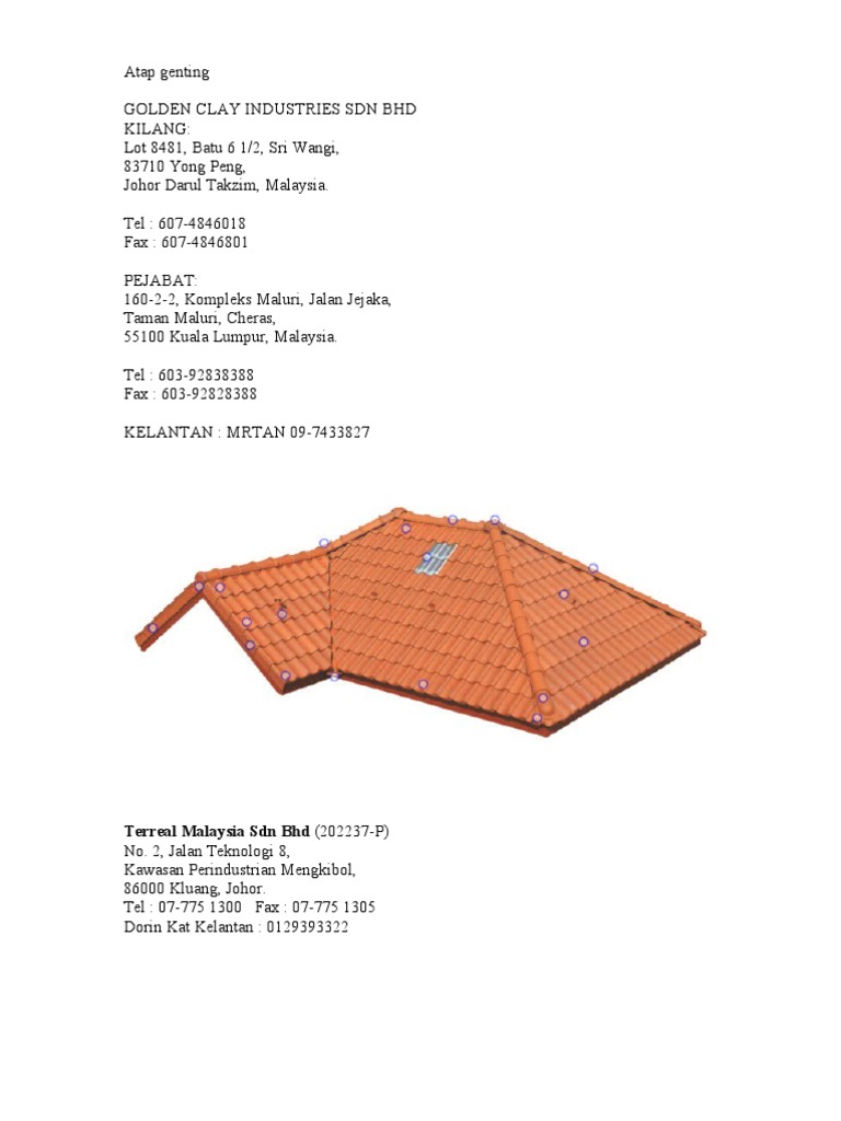 Atap genting merupakan sejenis atap yang diperbuat daripada tanah liat nipis. Contextual translation of atap genting konkrit dengan kekuda kayu into English. Berkualiti dan terbaik dalam pasaran.