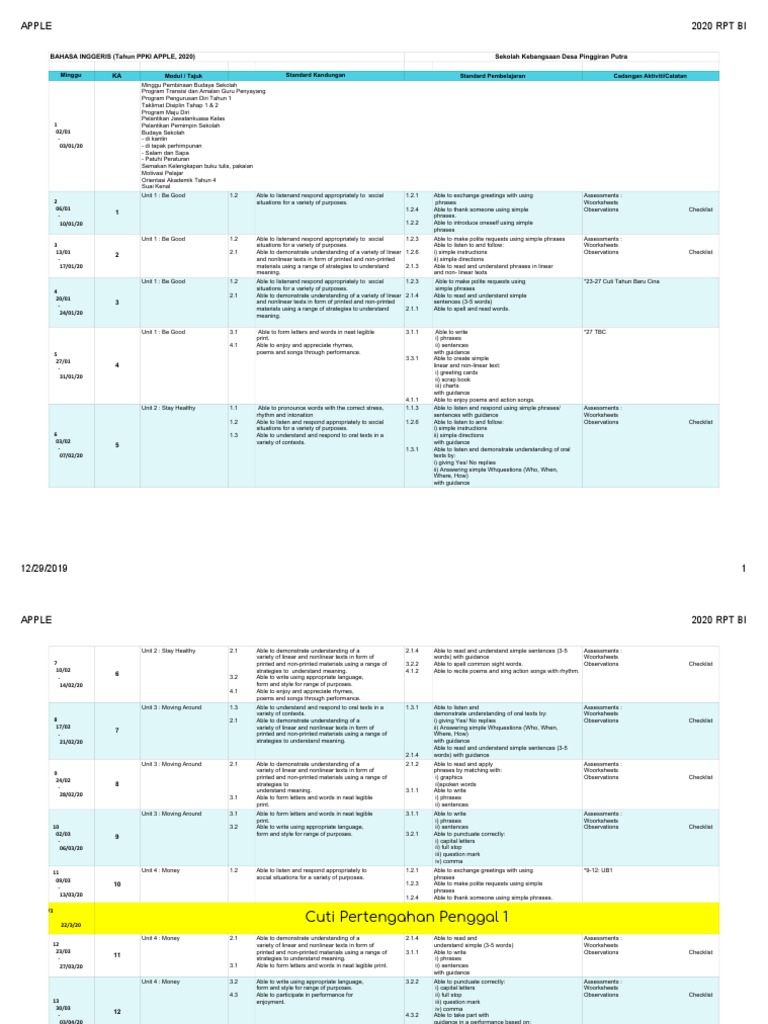 Next article Himpunan RPT KSSM Tingkatan 2. RPT BAHASA INGGERIS TAHUN 3 2019 SEMAKAN 78 Writing 18 appropriately in guided writing at sentence level Review of superlatives comparatives 33 - 34 Unit 10. Bacalah versi online RPT BM TINGKATAN 1 2019 tersebut.